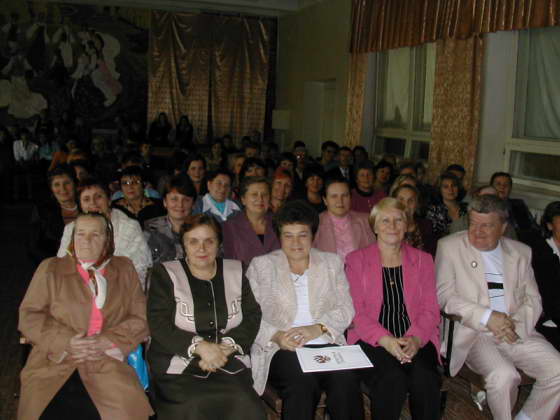 преподаватели колледжа и ветераны недагогического труда. Концерт открылся песней "Мы желаем счастья Вам".