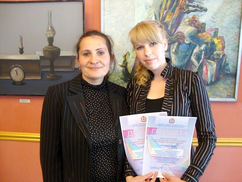 В Нижегородском государственном техническом университете им. Р.Е.Алексеева состоялась Областная научно-практическая конференция, в которой приняли участие студенты 571 группы Лукояновского педагогического колледжа им. А.М.Горького: Илья Гайнов и Михаил Сибирёв. Илья Гайнов занял I место в номинации "Современные технологии и материалы", а Михаил Сиберёв III место в номинации "Профессиональное мастерство и творчество". Преподаватель ЛПК М.А.Аброшнова была награждена дипломом за I место в номинации "Перспективный опыт развития профессионально-творческой деятельности обучающихся образовательных учреждений". |