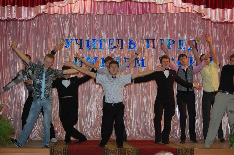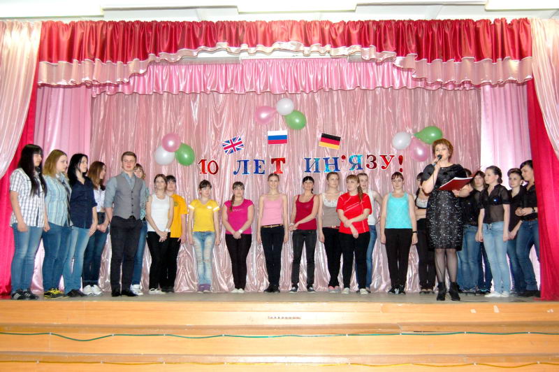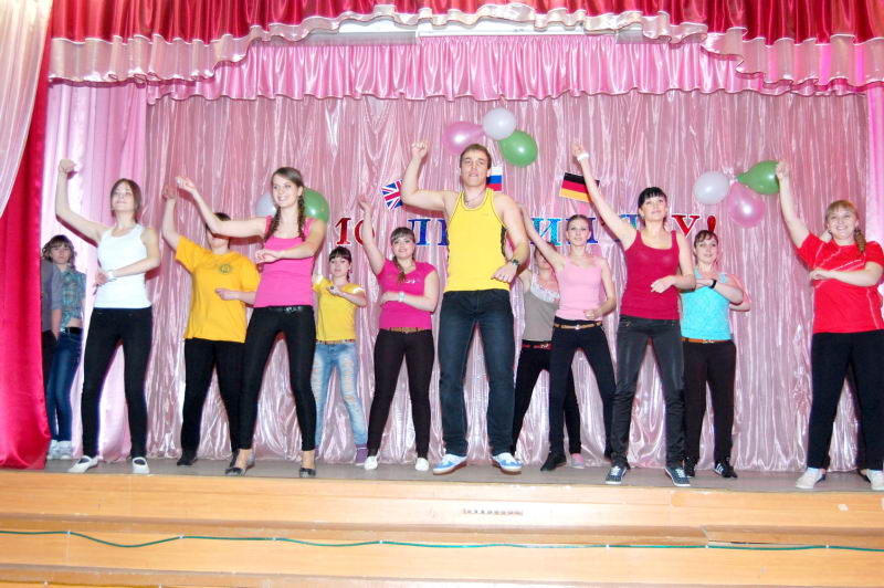 28 марта 2013 года в Лукояновском педагогическом колледже состоялся концерт, посвящённый десятилетию специальности "Иностранный язык". Концерт открылся ярким флешмобом. В исполнении практически всех студентов специальности прозвучали современные песни на русском, немецком и английском языках. Вниманию зрителей были представлены зажигательные танцы от танцевальной студии "Визави" и лирические стихи на английском и русском языках, переведённые юными поэтессами. Ведущими мероприятия были студент 5 курса Илья Кокарев и преподаватель немецкого языка Мария Валентиновна Чеченкова. По традиции концерт завершился презентацией самого творческого отделения ЛПК, подготовленной преподавателями и студентами, и бурными аплодисментами благодарных зрителей. |
