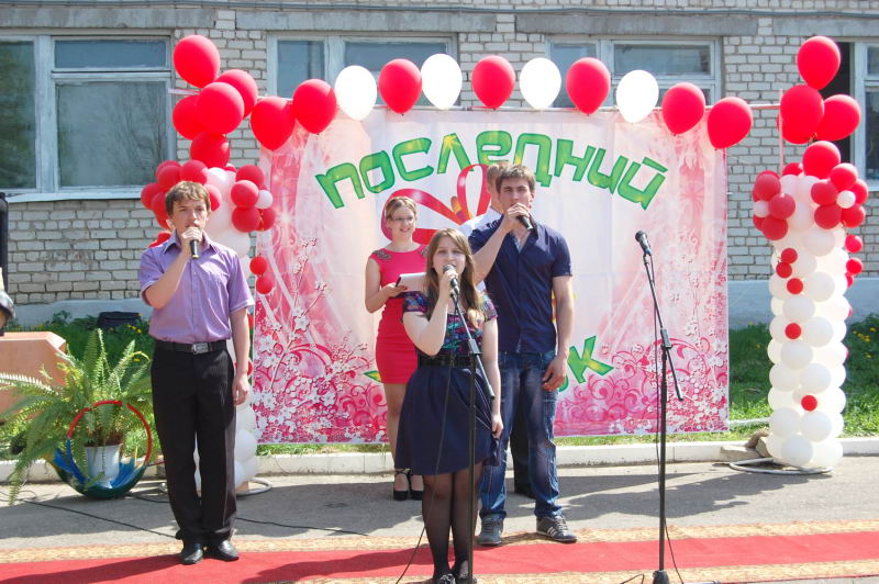 11 мая в Лукояновском педагогическом колледже им. А.М.Горького для студентов 421-ой ("Преподавание в начальных классах"), 411-ой ("Физическая культура"), 501-ой ("Иностранный язык") и 571-ой ("Информатика") групп прозвучал Последний звонок. Студенты получили поздравления от первокурсников и выслушали напутственные слова от директора ЛПК А.И.Сайгина, заведующих отделений, своих классных руководителей Н.В.Улановой, В.Н.Смольковой, Н.А.Тарановой и М.Н.Кашаевой. От родителей выпускников прозвучали слова благодарности в адрес преподавателей ЛПК. |