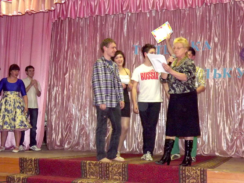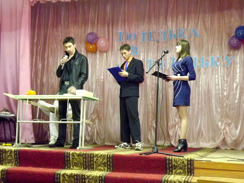 В Лукояновском педагогическом колледже впервые состоялся студенческий фестиваль пародий под названием "Тютелька в тютельку". Проект программы подготовил студент 421 группы Михаил Султанов. Студенты ЛПК представили зрителям пародии на звёзд отечественного шоу-бизнеса. Диплом I степени был вручён за пародию на песню группы "Король и Шут" "Кукла колдуна". Следующий фестиваль будет проходить 1 апреля 2014 года. Спасибо группам, принявшим участие в фестивале (121 гр., 221 гр., 421 гр., 112 гр., 311 гр.). |