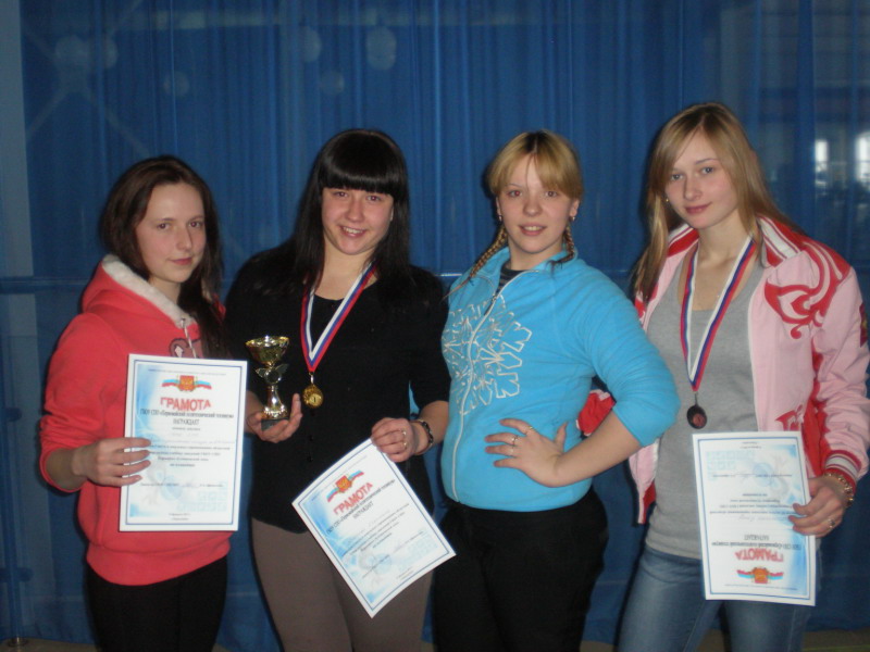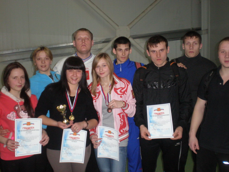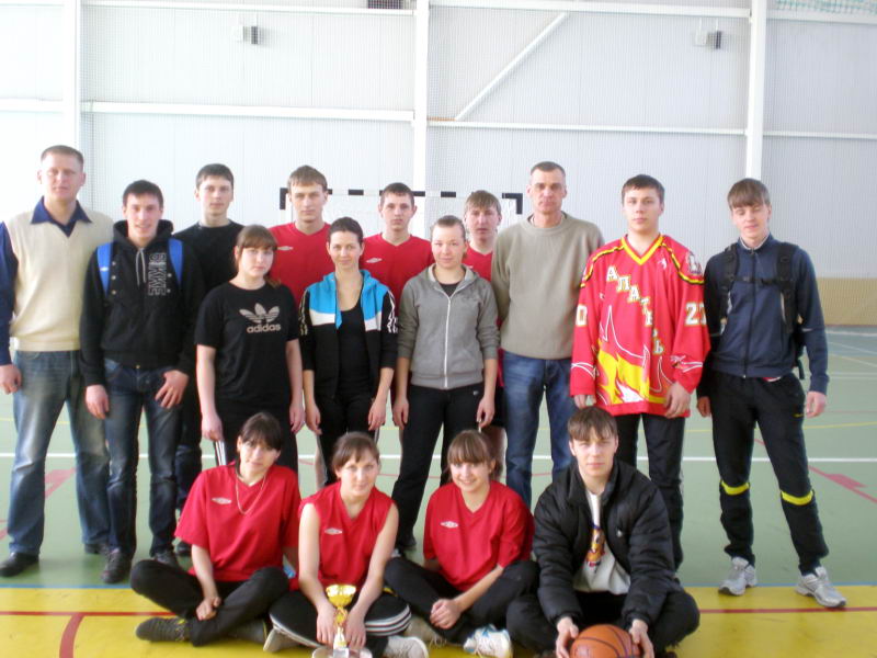 I команда юношей – 1 место 1. Лысак Дмитрий – 311 гр. 2.Федотов Дмитрий – 212 гр. 3. Лукоянов Максим – 411 гр. 4. Костин Александр – 211 гр. 5. Анисимов Руслан – 312 гр. 6. Шувалов Григорий – 312 гр. 7. Матвеев Игорь – 312 гр. 8. Безвительнов Алексей – 411 гр. 9. Громов Александр – 411 гр. II команда юношей – 2 место 1. Конаков Антон – 111 гр. 2. Чижов Сергей – 112 гр. 3. Новиков Владимир – 112 гр. 4. Сафронов Александр – 112 гр. 5. Соловьев Дмитрий – 112 гр. 6. Лыткин Дмитрий – 112 гр. 7. Грачев Сергей – 112 гр. 8. Бухаров Артем – 112 гр. 9.Романов Иван – 112 гр. 10.Лошманов Олег – 281 гр. 11. Уваров Алексей – 112 гр. команда девушек – 1 место 1.Селиванова Татьяна – 301 гр. 2. Бажутова Алене – 281 гр. 3. Биткина Юлия – 111 гр. 4.Толстова Елена – 112 гр. 5. Цыкина Евгения – 212 гр. 6. Столярова Юлия – 112 гр. 7.Тетерева Наталья – 311 гр. 8. Извозчикова Елена – 312 гр. 9. Горшкова Мария – 411 гр. 10.Назарова Анастасия – 411 гр.МОЛОДЦЫ!