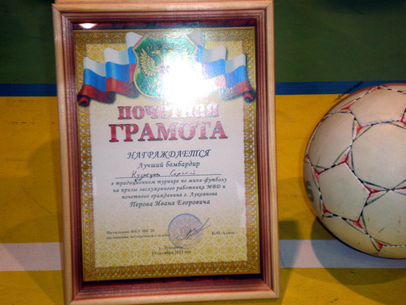 19 октября состоялся Турнир по мини-футболу на призы заслуженного работника МВД и почетного гражданина г. Лукоянова И.Е.Перова. Первое место заняла юношеская команда Лукояновского педагогического колледжа. |