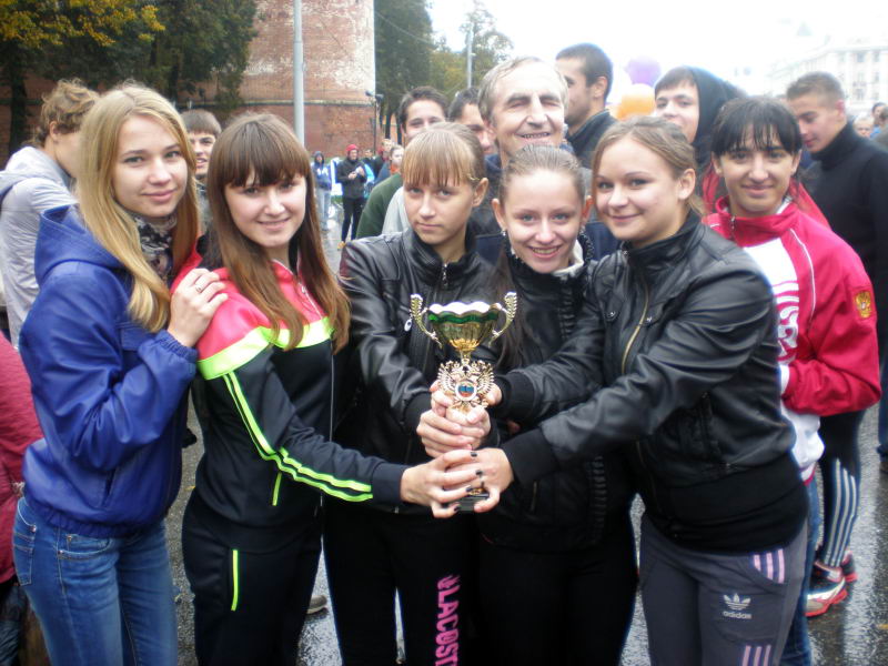 Легкоатлеты Лукояновского педагогического колледжа прекрасно выступили на эстафетном пробеге на призы газеты «Нижегородская правда», проходившем 22 сентября. ЛПК выступал среди учреждений среднего профессионального и начального профессионального образования. И команда девушек, и команда юношей на финише были первыми, сделав «победный дубль». Эстафета традиционно собирает всех сильнейших легкоатлетов области. На этапах в любую погоду идет острая бескомпромиссная борьба. В этот раз эстафета проходила под проливным дождем, но массовость пробега от этого не пострадала. Был дан старт двенадцати забегам. В нашем забеге бежало 29 команд. Девушки нашего педагогического колледжа с первого этапа захватили лидерство и, несмотря на отчаянные попытки очень сильных соперниц из Дзержинска, Нижнего Новгорода, Павлова достать лидера, сделать этого им не удалось. Команда Лукояновского педколледжа одержала убедительную победу. Борьба на этапах у юношей развивалась еще острее. Юноши нашего педколледжа всегда держались в голове забега, третьими, вторыми, но вперед смогли вырваться только в конце предпоследнего девятого этапа. На последнем этапе наша команда не только удержала первое место, но и увеличила отрыв. Корреспонденты сделали фотографии нашей команды. Кубки победителям вручала олимпийская чемпионка Наталья Садова. Тренер В.Н.Мыльников |