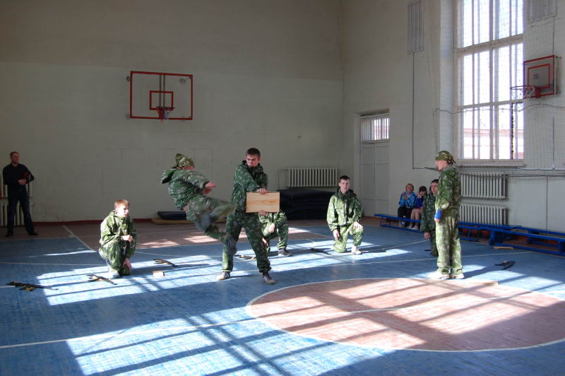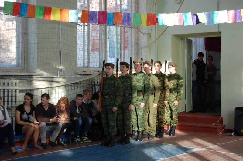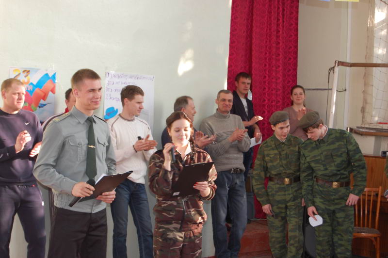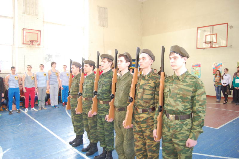 В рамках празднования Дня защитника Отечества, 19 февраля, в Лукояновском педагогическом колледже прошли соревнования "А ну-ка, парни!". В соревнованиях участвовали 8 команд это 1-4-ые курсы отделения физической культуры. О готовности команд директору колледжа А.И.Сайгину доложил главный судья соревнований А.И.Юкаев. Праздник открыли воспитанники ВПК "Витязь" с показательными выступлениями. Затем в борьбу вступили юноши отделения физической культуры. Для них были подготовлены военизированные эстафеты, такие как сборка и разборка АКМ, чистка картофеля, строевые приемы без оружия, пожарная эстафета. Девиз соревнований "Не победа, а участие", но все же в интересной и увлевательной борьбе победу одержали второй год подряд юноши 412 группы (классный руководитель Л.В.Семьина). Вторыми были ребята из 411 группы, третьими из 311 группы. Руководитель ВПК "Витязь" А.И.Юкаев |