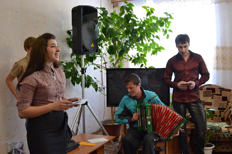 14 мая волонтеры Лукояновского педагогического колледжа и члены студенческого самоуправления побывали в селе Печи и поздравили пожилых людей, проживающих в Доме престарелых, с Праздником Победы. Для пожилых людей прозвучали песни военных лет, которы е исполнили Д.Костюнин, С.Симайченкова, М.Балахнин, О.Рябова, О.Боженкин, Д.Дербан, Д.Ганин, А.Паняхин. Руководители С.В.Мокшина, Ю.А.Перевозова, И.М.Бешенова |