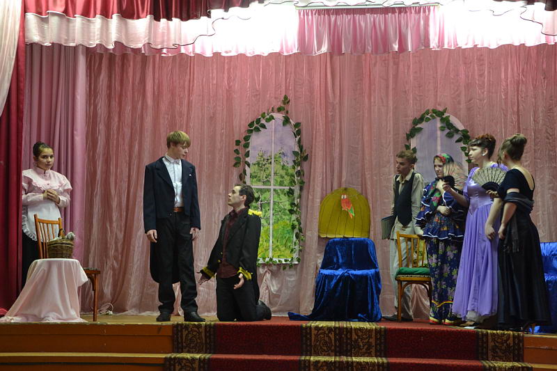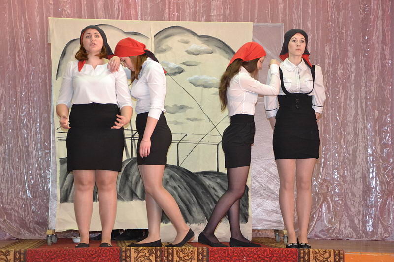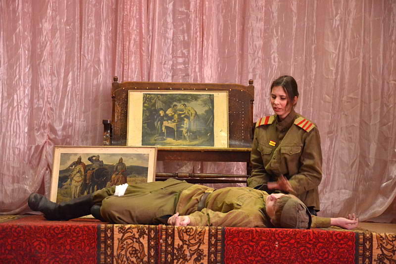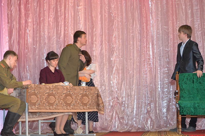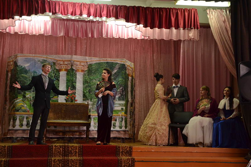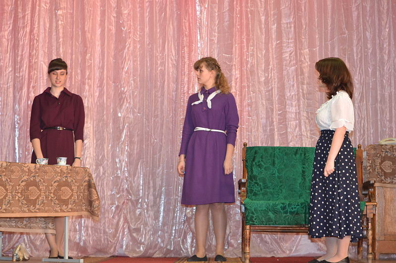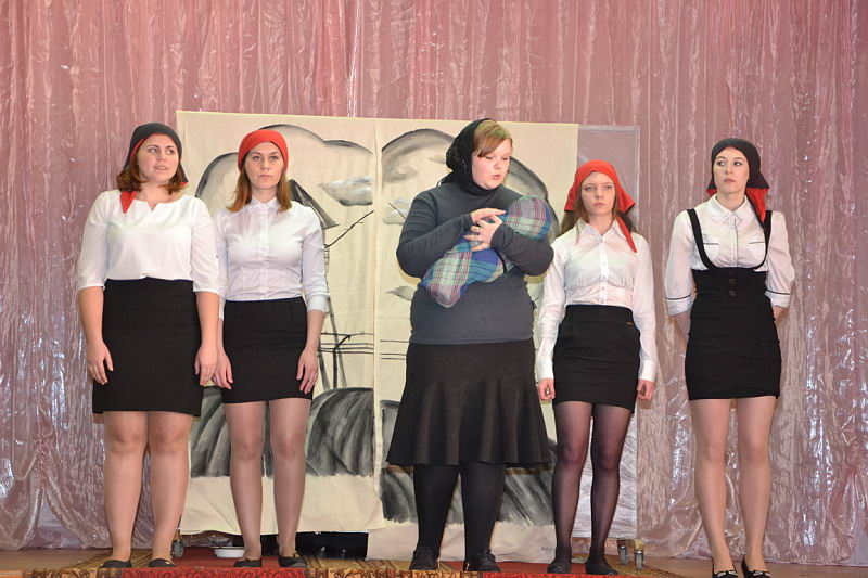 В конкурсной программе были представлены разножанровые произведения: «Урок дочкам» по пьесе И. А. Крылова, «Репетиция» по пьесе А. С. Грибоедова «Горе от ума», «Поговорим ещё раз о войне…» по произведениям А. Твардовского, О. Бергольц, Ю. Друниной, «Прикосновение» по пьесе Р. Ибрагимбекова и «Вечно живые» по пьесе В. Розова В выступлениях участники фестиваля продемонстрировали свой художественный уровень, технику исполнительского мастерства. Коллективы произвели впечатление на компетентное жюри яркостью и оригинальностью сценических костюмов, которые способствовали передаче образа и настроения того или иного театрального персонажа. Все коллективы использовали в своём выступлении различный реквизит, послуживший вспомогательным элементом в передаче сюжета спектакля. Зал активно реагировал на то, что происходило на сцене, и щедро дарил аплодисменты, выражая поддержку и благодарность. Участники конкурса награждены дипломами и поощрительными призами. |