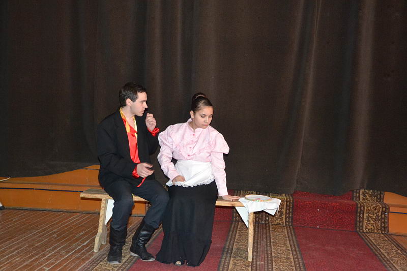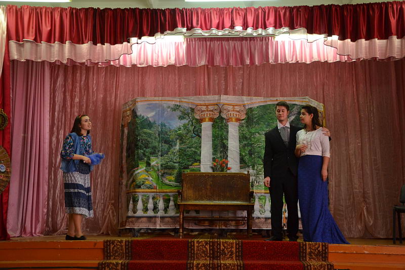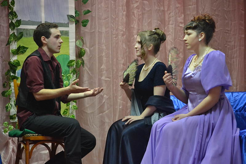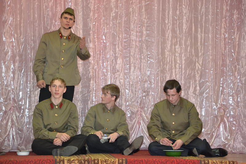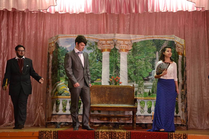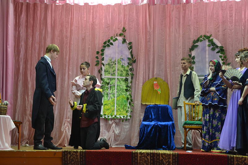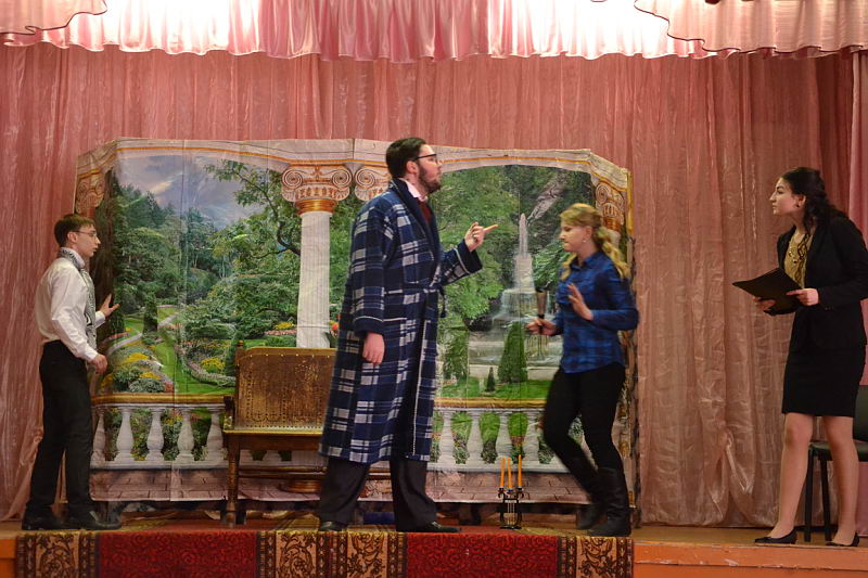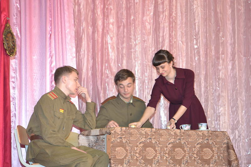 В конкурсной программе были представлены разножанровые произведения: «Урок дочкам» по пьесе И. А. Крылова, «Репетиция» по пьесе А. С. Грибоедова «Горе от ума», «Поговорим ещё раз о войне…» по произведениям А. Твардовского, О. Бергольц, Ю. Друниной, «Прикосновение» по пьесе Р. Ибрагимбекова и «Вечно живые» по пьесе В. Розова В выступлениях участники фестиваля продемонстрировали свой художественный уровень, технику исполнительского мастерства. Коллективы произвели впечатление на компетентное жюри яркостью и оригинальностью сценических костюмов, которые способствовали передаче образа и настроения того или иного театрального персонажа. Все коллективы использовали в своём выступлении различный реквизит, послуживший вспомогательным элементом в передаче сюжета спектакля. Зал активно реагировал на то, что происходило на сцене, и щедро дарил аплодисменты, выражая поддержку и благодарность. Участники конкурса награждены дипломами и поощрительными призами. |