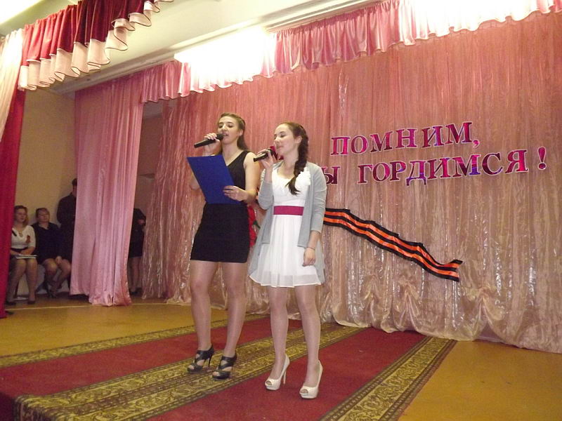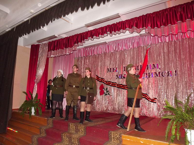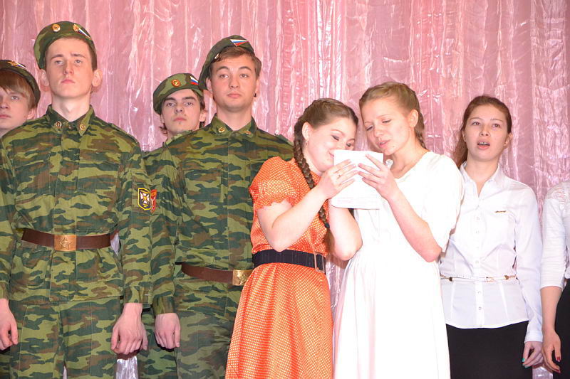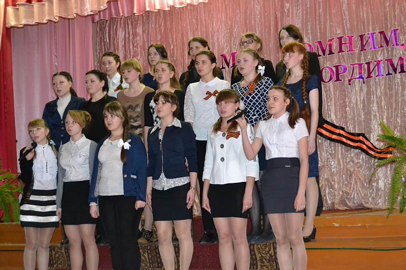 7 мая прошел Фестиваль патриотической песни, в котором приняли участие все учебные группы Лукояновского педагогического колледжа. На фестивале были исполнены песни военных лет и патриотические песни. Участники были награждены грамотами. Это мероприятие было подготовлено педагогом-организатором С.В.Мокшиной. |