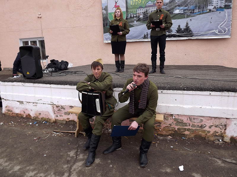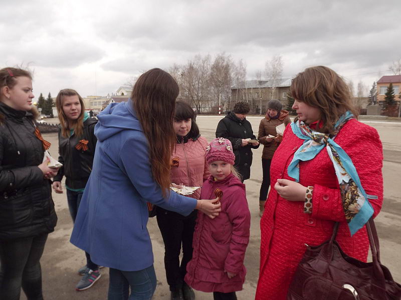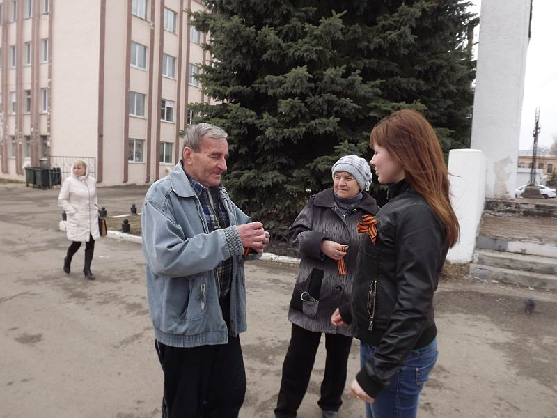 16 апреля волонтёры и члены студенческого самоуправления колледжа провели акцию «Живые строки войны», приуроченную к 70-летию Победы. Она стала одним из этапов проекта «Дороги Победы». На площади Мира волонтёры читали письма фронтовиков, исполняли песни военных лет. Прохожим был подарены георгиевские ленты и письма-треугольники. Вели концерт Елена Яльцева и Александр Зиновьев. Песни военных лет исполняли Максим Балахнин и Максим Кузнецов. В акции приняли участие волонтёры из 122, 231, 501 групп. Музыкальное сопровождение обеспечили Артём Паняхин и Алексей Нескин. Акцию подготовили и провели руководители волонтёрского объединения «За здоровый образ жизни» Ю.А.Перевозова, И.М. Бешенова и педагог-организатор С.В.Мокшина. |
