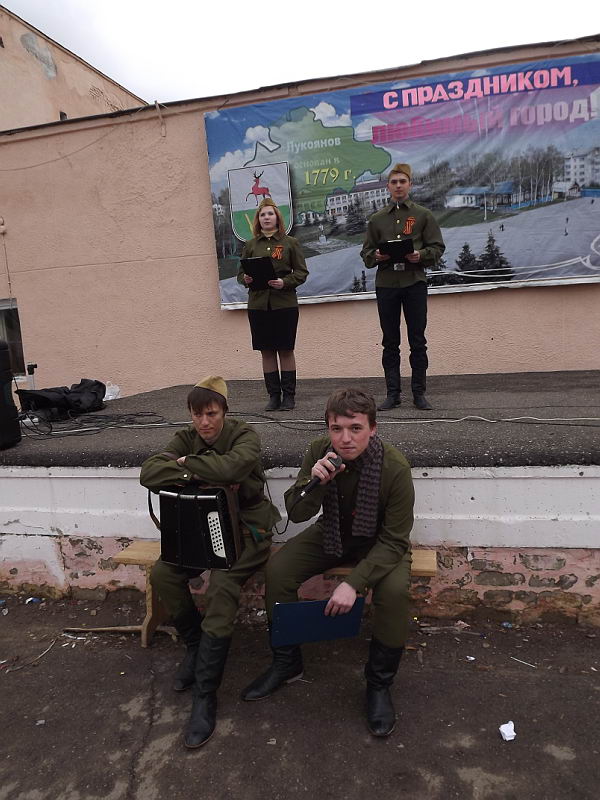 17 апреля студенты колледжа Максим Балахнин и Анатолий Захватов приняли участие в концерте для ветеранов Великой Отечественной войны и работников тыла. Мероприятие было организовано комплексным центром социальной защиты Лукояновского района при участии волонтёров педагогического и членов студенческого самоуправления колледжа и учеников школы №2. |