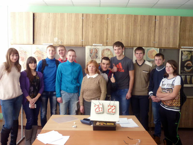 С 16 по 20 февраля 2015 года в педагогическом колледже была проведена традиционная неделя биологии под символичным названием "Знания и умения всегда найдут применение". В ходе недели со студентами разных специальностей были проведены интересные мероприятия: Во всех группах были проведены беседы "Из жизни замечательных людей" Вернадский В.И., Менделеев Д.И., Сеченов И.М., Вавилов Н.И., Мичурин И.В., в основном была освещена деятельность ученых внесших вклад в развитие науки. Студенты вместе с преподавателями Смольковой В.Н., Малашиной М.П., Аникиной Л.И., Ословой М.В., подбирали материал для проведения бесед, готовили сообщения с презентациями. В конкурсе газет "В мире интересного" участвовали все группы. Были проведены олимпиады по анатомии, химии, географии, естествознанию. Наиболее запоминающими, интересными мероприятиями были игры ЌСчастливый случайџ на физкультурном отделении среди 211 и 212 групп под руководством Малашиной М.П.,игра "Битва интеллектуалов" в 321 группе под руководством Смольковой В.Н., Брейн – ринг Ќ Чудеса в природеџ 221 группа – Смолькова В.Н., урок конкурс "Физкультура спорт и труд нас к здоровью приведут" прошел интересно и познавательно. Каждый студент предлагал для конкурса подобранные им игры, физкультминутки, упражнения для релаксации. Студенты в роли детей с удовольствием их выполняли. В конце урока обсуждая деятельность друг друга были сделаны выводы о том когда и где можно провести данные мероприятия. На классном часе в 211 группе под руководством Смольковой В.Н. был проведен "Час занимательной экологии". Преподаватель В.Н.Смолькова |