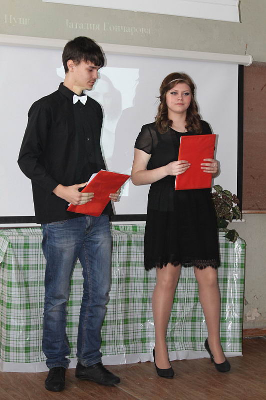 2 марта 2015 года в читальном зале Лукояновского педагогического колледжа прошла литературно-музыкальная композиция "Новеллы о любви". Накануне Международного женского дня студенты нашего колледжа, совместно с сотрудниками библиотеки, рассказали о любви великих людей. О самой невероятной странице в биографии А. С. Пушкина (его браке с Натальей Гончаровой) поведали Комарова Юлия (студентка 221 гр.) и Босенко Дмитрий (студент 122 гр.). От Монастырской Светланы (студентка 221 гр.) и Поняхина Артёма (студент 281 гр.) зрители узнали о браке Л. Н. Толстого с С. А. Берс, которая пожертвовала всем ради своего мужа. О ярких, как пламя огня, мгновениях счастья поэта А. С. Грибоедова и Н. Чавчавадзе рассказали Мокеева Мария (студентка 121 гр.) и Петров Василий (студент 321 гр.). Тузина Алёна (студентка 121 гр.) и Власов Александр (181 гр.) познакомили присутствующих с тридцатилетней любовной перепиской В. Гюго и его возлюбленной Ж. Друэ, а также Ќокунулиџ всех в волшебный мир любви и музыки В. А. Моцарта и его жены К. Вебер. От Дубининой Виктории (студентка 121 гр.) и Силаева Александра (112 гр.) студенты узнали о непростых взаимоотношениях Л. Бетховена и его "бессмертной возлюбленной", графине Д. Гуакарди. На протяжении всего вечера звучали фонограммы писем великих людей любимым женщинам в записи мужчин – педагогов колледжа. В конце мероприятия под песню ЌВечная любовьџ Дубинина Виктория и Силаев Александр станцевали прекрасный вальс, который подхватили и все участники вечера. |