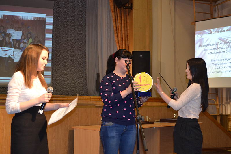 2 апреля в Центре эстетического воспитания Нижегородской области состоялся финал областного смотра-конкурса волонтёрских объединений "Волонтёром быть здорово!". В нём приняли участие руководители и лидеры 114 волонтёрских объединений области, более 300 человек. Волонтёрское объединение ЌЗа здоровый образ жизниџ стало призёром в номинации ЌКопилка волонтёраџ. Руководители объединений Ю.А. Перевозова и И.М. Бешенова и волонтёры Марина Обидина и Ольга Кукушкина приняли участие в церемонии награждения, презентовали методическую разработку по проведению молодёжного волонтёрского форума ЌВолонтёр будущегоџ и мастер-класс ЌАукцион волонтёрских идейџ. |