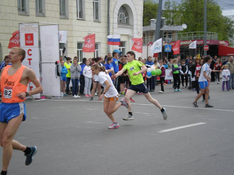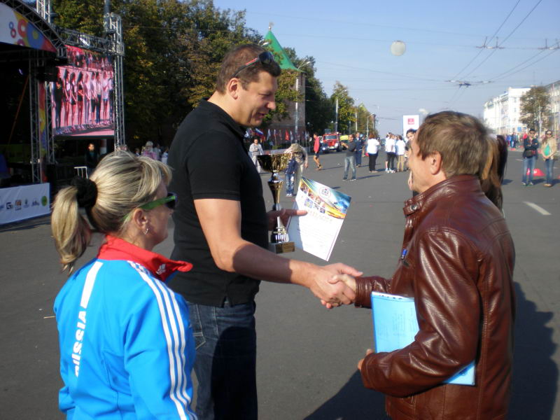Всероссийский день бегаВ воскресенье, 21 сентября, по всей стране проводился главный и самый массовый спортивный праздник летнего сезона Всероссийский день бега. В этот день в самом центре Нижнего Новгорода на площади Минина собрались многотысячные поклонники прекрасного вида спорта легкой атлетики. Праздник продолжался весь день. Сначала с 10 часов чествовали ветеранов спорта, затем бежали свои дистанции самые маленькие спортсмены. С 11 часов начались массовые старты Всероссийского кросса наций, а в 13 часов 30 минут начались забеги эстафетного пробега на призы газеты «Нижегородская правда». Эстафета была завершающим мероприятием Дня бега и явилась украшением праздника. Среди ее участников можно было увидеть всех сильнейших легкоатлетов нашей области, чемпионов и призеров Олимпийских игр, чемпионатов мира, Европы и России, а также перспективную и подающую большие надежды молодежь. От нашего района в эстафете участвовали команды юношей и девушек