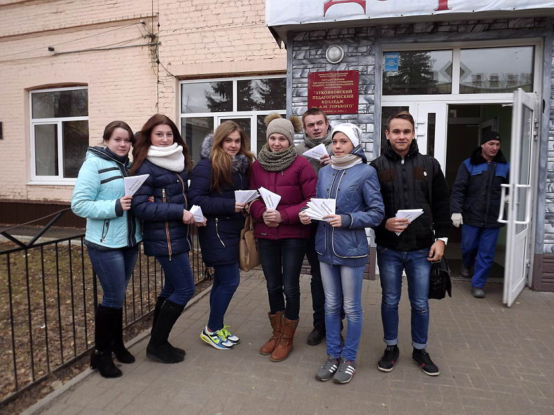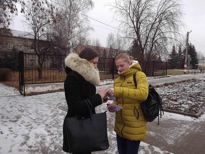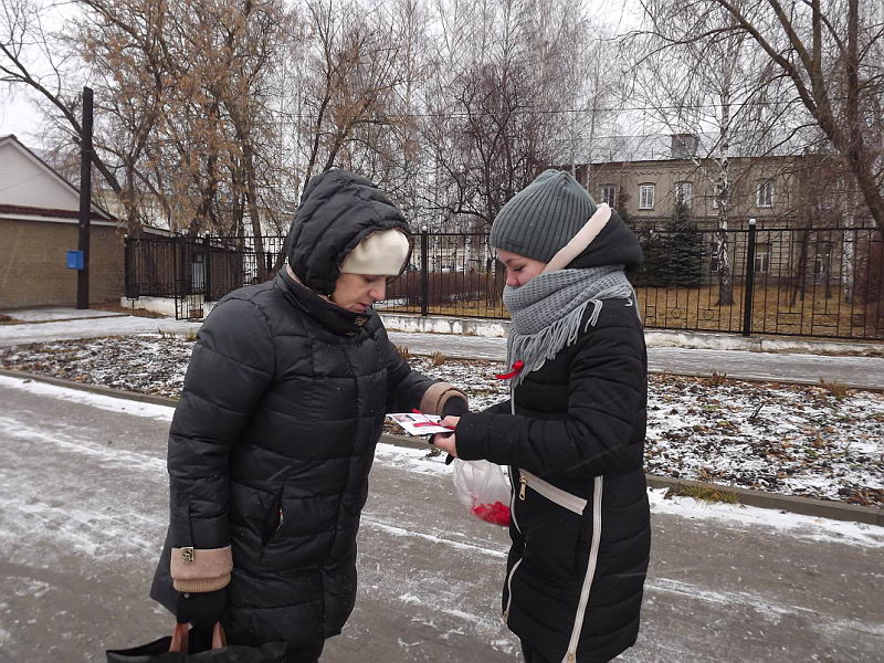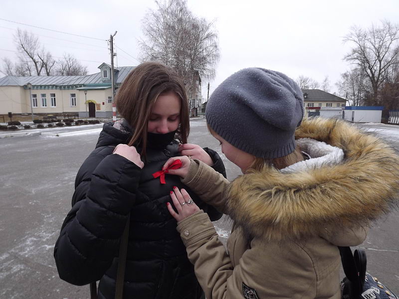 1 декабря отмечается Всемирный день борьбы со СПИДом. Волонтёрское объединение колледжа «За здоровый образ жизни» совместно с волонтёрами школы № 1 организовали и провели акцию «Время задуматься», приуроченную к этому дню. На площади Мира участники акции раздавали горожанам тематические листовки и красные ленточки — символы Дня борьбы со СПИДом. Организаторы мероприятия — Мокшина Светлана Валерьевна, Перевозова Юлия Алексеевна, Бешенова Ирина Михайловна (педагогический колледж), Дымова Ирина Александровна (школа №1). |