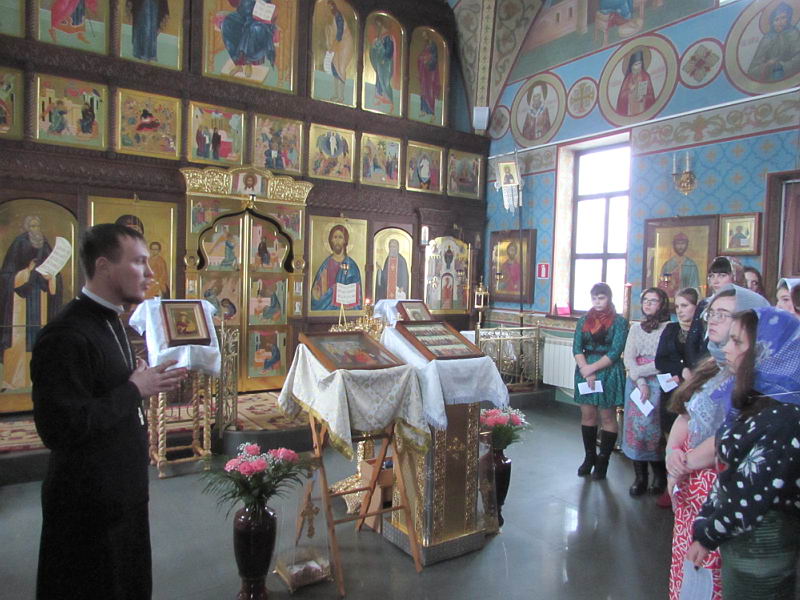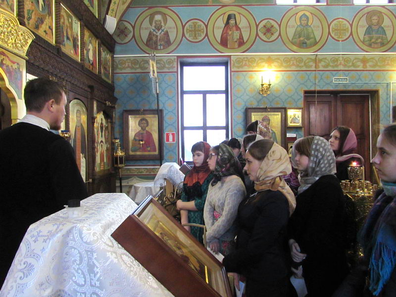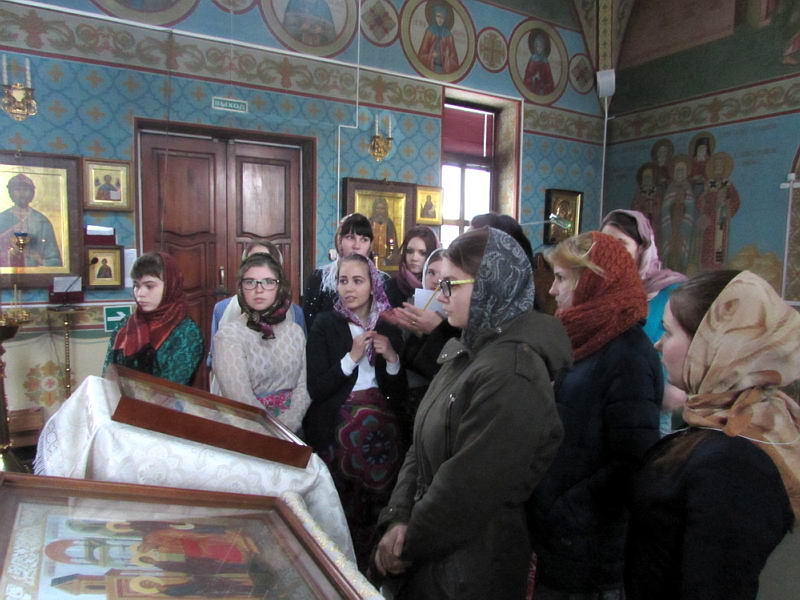 С 15 по 19 февраля студенты 1 курса Специальности Преподавание в начальных классах и Дошкольное образование в рамках духовно-нравственного воспитания студентов под руководством преподавателя общественных дисциплин Востряковой Т.В., посетили с экскурсией Лукояновский храм Покрова Пресвятой Богородицы. В ходе экскурсии студенты узнали об истории возникновения храма, особенностях его архитектуры и внутреннего убранства, правилах поведения в храме, символическом образе Богородицы, особенностях жанра иконописи. По окончании экскурсии все присутствующие смогли задать вопросы отцу Родиону Каримуллину. |