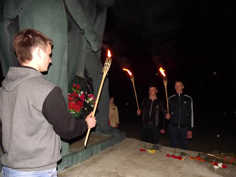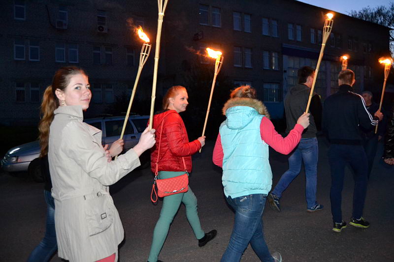 Зажгли огонь памятиНесколько дней назад страна отметила 71-ю годовщину Дня Победы в Великой Отечественной войне. Все большее расстояние отделяет нас от тех тяжелых героических лет. Все меньше ветеранов и детей войны, все больше в мире новых версий о событиях 1941-1945 годов, придуманных в разных странах мира. Поэтому особенно ценно уважение молодежи к нашей истории, к героям-ветеранам, важно, чтобы в каждом сердце хранилась благодарность тем, кто СПС мир от фашизма. Вечером 6 мая студенты и преподаватели педагогического колледжа собрали на площади Мира более двухсот человек для проведения мероприятия «Огонь нашей памяти», посвященного Дню Победы в Великой Отечественной войне. В мероприятии также приняли участие студенты и преподаватели Лукояновского сельскохозяйственного техникума, учителя и ученики школы № 1, сотрудники и воспитанники Дома детского творчества. Организаторами и самыми активными участниками стали волонтеры объединения «За здоровый образ жизни» педагогического колледжа (руководители Перевозова Ю.А., Бешенова И.М.) и члены студенческого самоуправления (руководитель Мокшина С.В.). Мероприятие открыл заместитель директора ЛПК А.И.Юкаев. Он говорил о том, что огромное горе войны, которая унесла жизни более 26 миллионов людей, живших на территории СССР, не забыть ни за одно поколение, ни за два, ни за три. История жива, пока она хранится в памяти людей, и нам, современному поколению, нужно помнить события войны, чтить ветеранов. Мы зажигаем огонь факелов – символ нашей памяти о событиях и героях Великой Отечественной войны. В концерте прозвучали песни о войне и военного времени в исполнении студентов педагогического колледжа, сельскохозяйственного техникума, учеников средней школы № 1. В исполнении ведущих Павла Новикова и Дианы Горбуновой звучали стихи и письма военных лет. Мероприятие завершилось факельным шествием участников и возложением гирлянд к памятнику «Фронт и тыл» в городском парке. Традиция факельных шествий в честь Дня Победы становится популярной в России. Например, в Керчи факельный огонь проносят по городу с 1973 года, когда городу было присвоено звание Героя. В Нижегородской области факельные шествия проводятся в Перевозе, Сергаче и других городах. В 2016 году традиция заложена и в нашем городе. Факельный огонь на вечерних улицах – зрелище необычное, красивое и очень торжественное. По словам участников шествия, пронести огонь памяти о Великой Победе – это не только яркие впечатления, но и большая ответственность, чувства гордости и патриотизма. Организаторы мероприятия благодарят за моральную и материальную поддержку директора Лукояновского педагогического колледжа Александра Ивановича Сайгина, а также военно-патриотический клуб «Витязь» (руководитель А.И.Юкаев) и организации, представители которых приняли в мероприятии участие: МБОУ СШ № 1, ЛСХТ, Дом детского творчества. И.М.Бешенова |