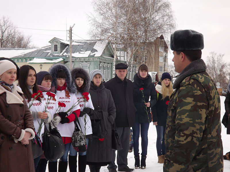 3 декабря Россия отметила День неизвестного солдата. По всей стране в этот день прошли митинги у памятников героям Великой Отечественной войны. На площади Мира в городе Лукоянове 3 декабря 2015 года собрались волонтёры района, среди которых были и студенты педагогического колледжа (волонтёрское объединение «За здоровый образ жизни», руководители Ю.А.Перевозова, И.М.Бешенова; военно-патриотический клуб «Витязь», руководитель А.И.Юкаев; студенческое самоуправление, руководитель С.В.Мокшина). Перед собравшимися выступил военком Лукояновского района С.В.Гурьянов. К памятнику героям Великой отечественной войны участниками военно-патриотического клуба «Витязь» была возложена гирлянда в память о подвиге наших земляков в годы Великой Отечественной войны. |