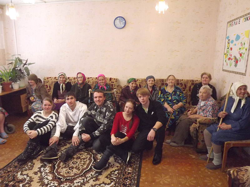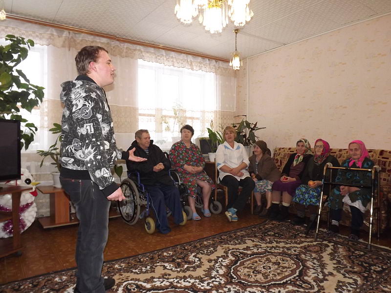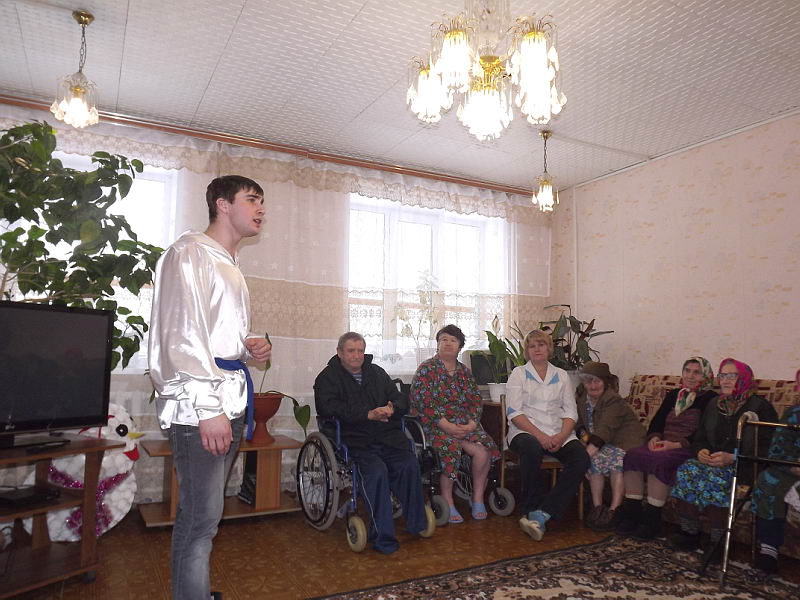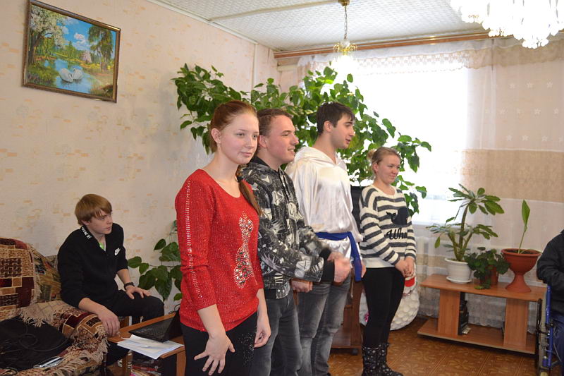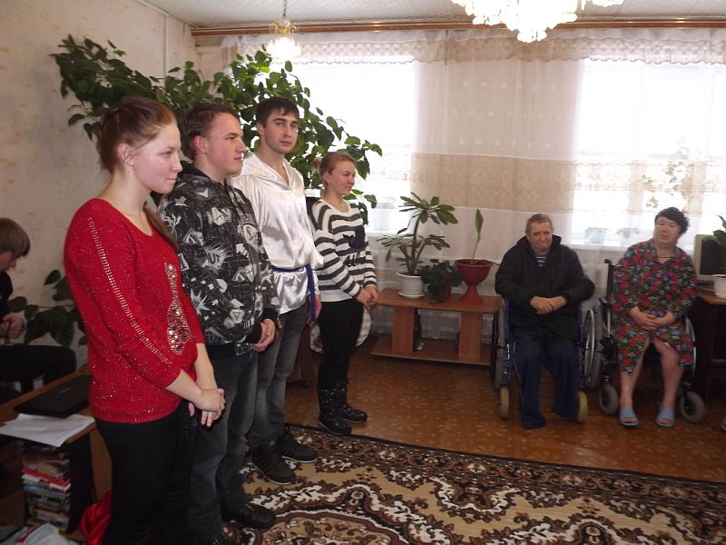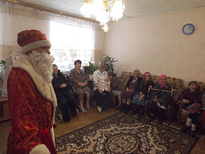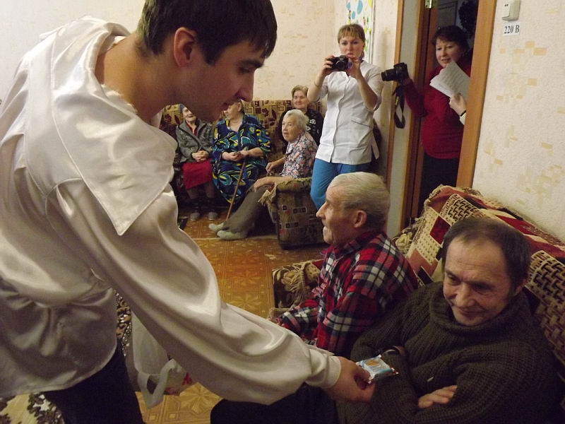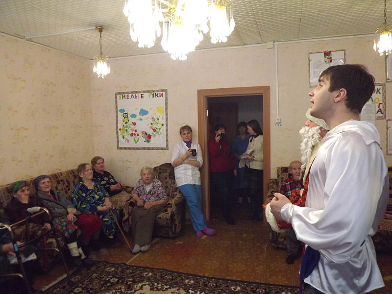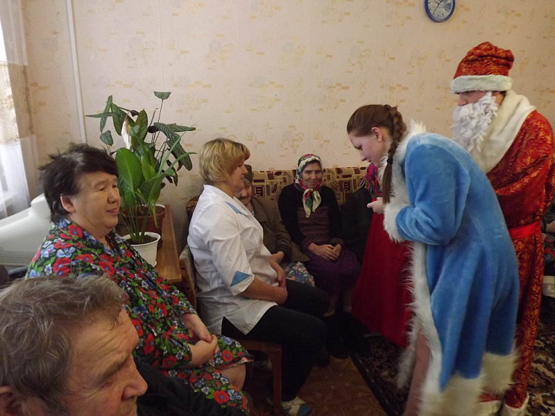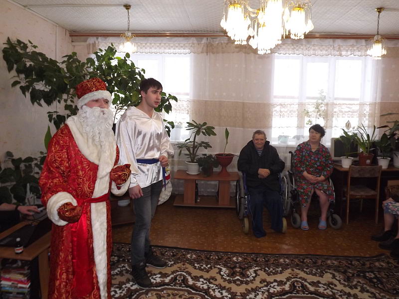 14 января волонтёры объединения «За здоровый образ жизни» поздравили пожилых людей и инвалидов, проживающих в ГБУ «Лукояновский дом-интернат», со старым Новым годом. Волонтёры Анатолий Захватов, Максим Балахнин, Дарья Завидонова и Татьяна Аряева показали музыкальное представление с участием новогодних персонажей: Деда Мороза, Снегурочки, Трубадура и Цыганки. Волонтёры пожелали зрителям здоровья, долголетия, хорошего настроения. Музыкальное сопровождение мероприятия обеспечил студент-волонтёр Артём Паняхин. Посещение центра было организовано в рамках волонтёрского проекта «Дорога добра» (руководители Юлия Алексеевна Перевозова, Ирина Михайловна Бешенова, Светлана Валерьевна Мокшина). |