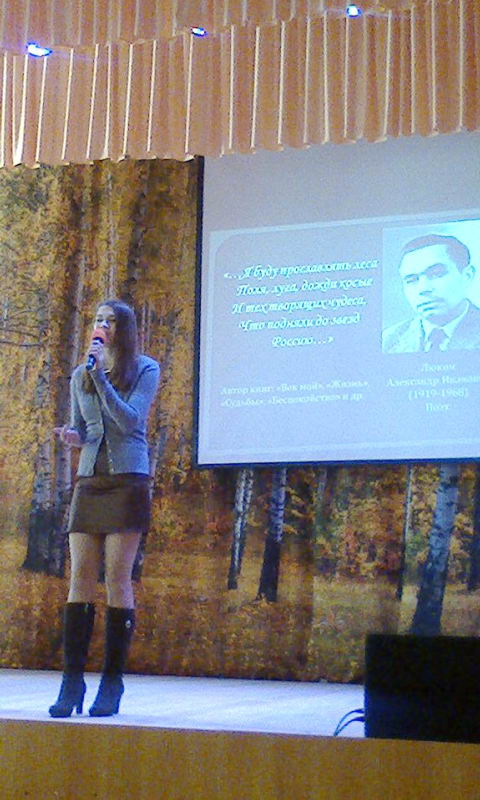 29 марта 2016 года состоялся VIII Областной поэтический конкурс им. А. И. Люкина «Поднять до звёзд Россию» в Нижегородском государственном инженерно-экономическом университете г. Княгинино. Студенты ГБПОУ «Лукояновский педагогический колледж им. А.М. Горького» Мочалова Марина, Астраханцева Ольга, Балахнин Максим и Касаткина Валерия приняли участие в двух номинациях «Поэтическое творчество молодых авторов «Открытое сердце» и «Художественное чтение «Поэзии живые строки». Максим Балахнин в номинации «Художественное чтение «Поэзии живые строки» занял 2 место и был награждён Дипломом, все остальные участники получили грамоты. |