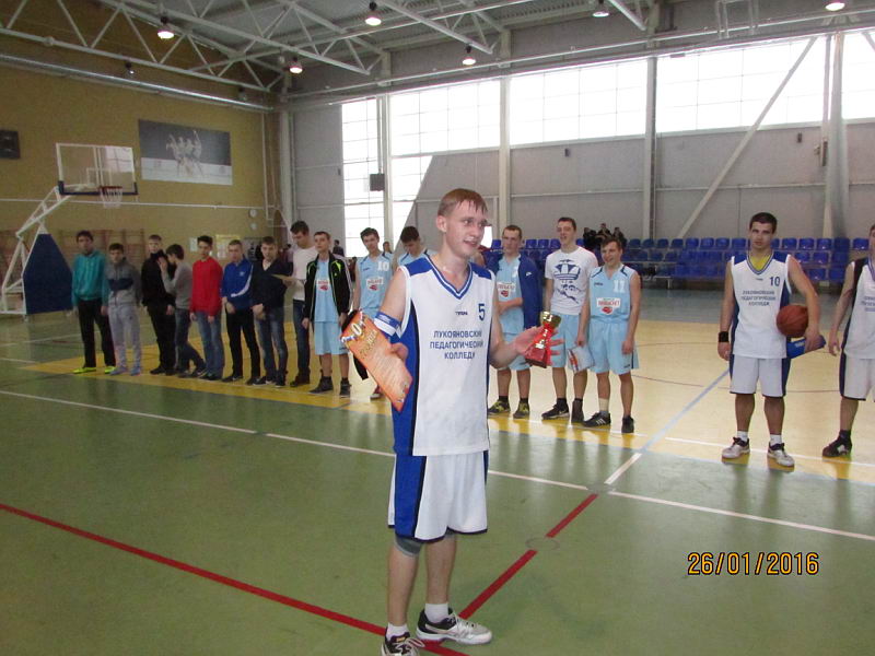 Поздравляем!26 января 2016 года в спортивном зале ФОКа «Колосс» проходили зональные соревнования по баскетболу среди юношей областной Спартакиады, обучающихся по программам среднего профессионального образования. Команда ГБПОУ «Лукояновский педагогический колледж им. А.М.Горького» заняла I место. 1.Пачестников Дмитрий 312 гр.