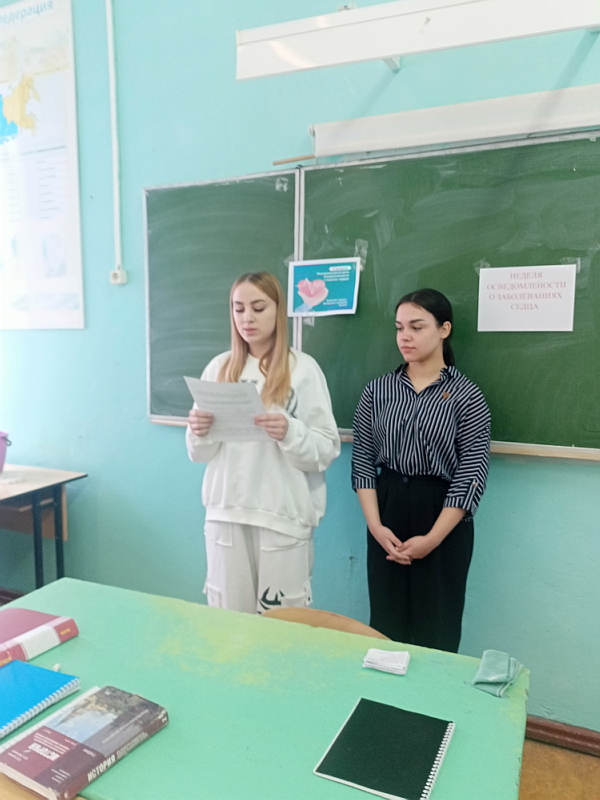 В рамках Недели осведомленности о заболеваниях сердца, проводимой с 10 по 16 февраля студенты ЛПК, посещающие кружок Человек и его здоровье под руководством М.П. Малашиной провели акцию "Береги сердце смолоду". В разных группах были проведены информационные минутки о правилах сохранения здоровья и подготовлены памятки, которые студенты получили с целью профилактики сердечно-сосудистых заболеваний. В рекреации каждый желающий мог измерить артериальное давление и получить совет о возможностях применения физических упражнений, дыхательной гимнастики для коррекции состояния сердечной системы. |