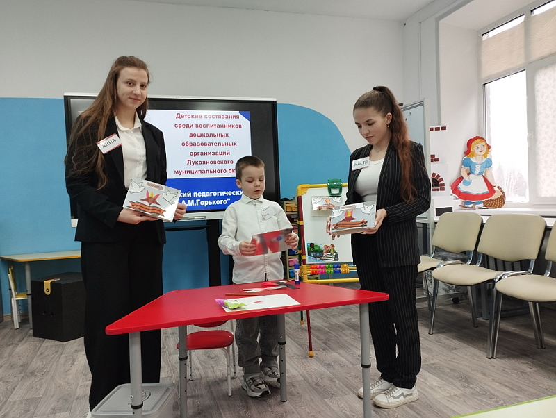 12 марта на базе ГБПОУ «Лукояновский педагогический колледж им. А.М. Горького» проводился «СтартПРОФИ» чемпионат профессионального мастерства на основе ранних профессиональных проб по компетенции Дошкольное воспитание с учетом возрастных особенностей участников чемпионата детей дошкольного возраста. Чемпионат «Старт ПРОФИ» современный формат ранней профориентации молодежи для выявления и поддержки способных и одаренных детей дошкольного возраста. Для детей это яркий, запоминающийся праздник встречи с профессией. Демонстрация элементарных профессиональных умений в профессии воспитатель на основе ранних профессиональных проб детей старшего дошкольного возраста основная цель чемпионата. В чемпионате принимали участие ребята из разных дошкольных образовательных учреждений Лукояновского Муниципального округа. Каждый год у чемпионата, объединяющего детей, родителей и педагогов, появляются новые традиции, каждый год растет число его участников. В этом годы в чемпионате участвовало 9 воспитанников, из 6 дошкольных образовательных учреждений: Шалыгина Мария (МБДОУ детский сад № 1), Трохина Анна, Афанасьева Ульяна (МБДОУ детский сад №3), Пушкина София (МБДОУ детский сад № 4), Бочкова Полина, Губскова Кира (МБДОУ детский сад № 6), Нефедов Макар (МБДОУ детский сад № 8), Канавцева Виктория, Рульнов Артем (МБДОУ Кудеяровский детский сад), Воспитанники детских садов 6-7 лет демонстрировали свои умения в компетенции Дошкольное воспитание. Перед участниками стояла задача: продемонстрировать умения организовывать образовательную деятельность по созданию аппликации в совместной организованной деятельности воспитателя с детьми дошкольного возраста. За 25 минут, которые отводились для демонстрации фрагмента занятия по теме «Этот День Победы» (аппликация), юные участники должны были провести организационный момент, вводную беседу, напомнить правила работы с оборудованием, обсудить сюжет, подобрать материал, провести пальчиковую гимнастику, физкультминутку, организовать самостоятельную деятельность детей, применяя способы педагогической поддержки детей, подвести итоги занятия. В роли детей выступали волонтеры студенты педагогического колледжа. На чемпионате юные профессионалы смогли продемонстрировать своё мастерство не только экспертам, но и зрителям, которые от души болели и переживали за юных профессионалов. На протяжении всего чемпионата велась видео демонстрация. Маленьким воспитателям не занимать серьезности. Несмотря на то, что они еще только воспитанники детского сада, дети уже пробуют себя в профессии воспитателя. Все участники, несмотря на возраст, с этой задачей справились, а самое главное, что все эти навыки пригодятся им в будущем, какую бы профессию они в итоге ни выбрали. Погрузиться в профессию помогли педагоги-наставники: Лапштанова Анна Ивановна, Волкова Марина Анатольевна, Антипова Ольга Валерьевна, Ушанова Ирина Владимировна, Комкина Светлана Валентиновна, Харламова Татьяна Николаевна, Калачева Светлана Николаевна, Поляева Светлана Николаевна, Семенова Ольга Ивановна, которые занимаются с детьми и обучают их простым навыкам. Оценивали знания, умения и профессиональные навыки будущих воспитателей настоящие профессионалы. Экспертами чемпионата выступили преподаватели колледжа Каленкова Л.В., 