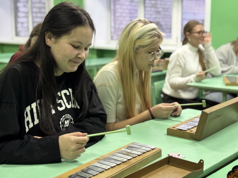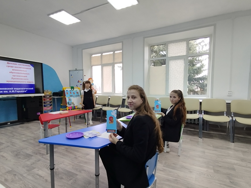 11 декабря 2024 года на базе ГБПОУ «Лукояновский педагогический колледж им. А.М. Горького» проведено мероприятие «Тест-драйв профессий» по компетенции «Воспитатель» с учащимися 9 классов образовательных организаций Сергачского муниципального округа. Основная цель популяризация профессии «Воспитатель детей дошкольного возраста», профориентационная работа. Данное занятие проведено в интегрированной форме. Оно сочетало теоретическую часть и практикоориентированную. В ходе теоретической части занятия преподаватели Эрастова Н.Н. и Пергаева О.В. познакомили с особенностями профессии. Ребятам было предложено выполнить задания и упражнения на знание качеств личности воспитателя, определение значимости профессии в обществе. Практическая часть занятия проведена в форме квест-игры, которая включала 5 станций. Названия станций соответствовали 5 образовательным областям в соответствии с ФГОС ДО. Каждая группа получила маршрутный лист и отправилась в путешествие в удивительный мир профессии «Воспитатель детей дошкольного возраста». На станции «Познавательное развитие» школьников познакомили с особенностями формирования элементарных математических представлений у детей дошкольного возраста, предложили выполнить задания с дидактическим материалом. Студентка 4 курса, специальность 44.02.01 Дошкольное образование, Дмитриева Диана провела мастер-класс по работе с цифровой лабораторией «Наураша в стране Наурандии». На станции «Речевое развитие» преподаватель Шумидуб Н.С., совместно со студентами 4 курса, провела мастер-класс по развитию связной речи с использованием технологии «Сторителлинг». Станция «Художественно-эстетическое развитие» состояла из двух направлений: продуктивные виды деятельности и музыкальная деятельность. И.А. Кудашова в ходе проведения мастер-класса предложила выполнить роспись сувениров на тему «Новогодняя сказка». Ребята с интересом расписывали готовые формы, которые получили в подарок от нашего колледжа. Г.И. Мыльникова провела все виды музыкальной деятельности, используемые в детском саду для проведения праздников и развлечений: разучили песни, танцевальные упражнения, играли оркестром на детских музыкальных инструментах. На станции «Социально-коммуникативное развитие» студентка 4 курса Александрова Оксана провела интерактивные игры на общение, которые можно использовать с детьми дошкольного возрасте. Очень интересно была организована работа на станции «Физическое развитие» . Н.В. Пашанина и Н.А. Моисеева, совместно со студентами 4 курса, предложили выполнить ребятам упражнения с обручем под музыку, выполнили основные виды движений: ходьба по канату, по гимнастической скамейке с перешагиванием через кубики, прыжки из обруча в обруч. Учащиеся прошли по тропе здоровья, ребристым доскам и коврикам. Было акцентировано внимание на значение физического развития детей дошкольного возраста. В заключение занятия подведены итоги, проведено упражнение на рефлексию. В ходе получения обратной связи было выяснено, что мероприятие учащимся понравилось, очень многих заинтересовала эта нужная и необходимая обществу профессия. Ребята с удовольствием поблагодарили всех организаторов мероприятия. В подарок они получили «Кодекс воспитателя», сертификаты об участии в мероприятии.