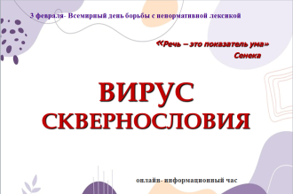 Всемирный день борьбы с ненормативной лексикой3 февраля ежегодно отмечается Всемирный день борьбы с ненормативной лексикой неофициальный праздник. Дело в том, что «ненормативная лексика» понятие несколько более широкое, чем просто нецензурная лексика (брань). Оно включает в себя и такие понятия, как «жаргон» и «сленг», которые в отличие от нецензурной лексики не являются запрещёнными к употреблению в общественных местах, не воспринимающиеся как асоциальное поведение, но, тем не менее, выходят за рамки общепринятых норм речи. Ни для кого не секрет, что жаргон и сленг характерны для определённых социальных групп, выделяемых по возрасту, профессиональной принадлежности, роду деятельности или хобби. Те или иные сленговые выражения нередко становятся частью повседневного общения, выходя за рамки сленговых групп («не наезжай», «не тормози», «лузер», «хакнул», «завис», «не в масть», «кича», «туса» и т.д.). Борьба со сквернословием имеет долгую историю, в разные эпохи эта проблема воспринималась и решалась по-разному. Цель Всемирного дня борьбы с ненормативной лексикой привлечь внимание к проблеме использования нецензурных выражений в повседневной речи и напомнить о важности грамотного, уважительного, культурного общения. |