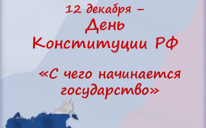 «С чего начинается государство»12 декабря в нашей стране отмечается государственный праздник День Конституции Российской Федерации. Главный нормативный правовой акт нашей страны, Конституция Российской Федерации, была принята 12 декабря 1993 года. Конституция фундамент, на котором строится наше общество, где уважаются права и достоинство каждого человека. Соблюдение этого закона гарантирует стабильность и порядок в обществе. Именно благодаря ей мы можем жить в мире и согласии, развивать нашу страну и строить светлое будущее для наших детей. |