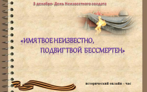 3 декабря в России отмечается День неизвестного солдатаДень неизвестного солдата это сравнительно новая памятная дата в российской истории, отмечается ежегодно 3 декабря. Этот памятный день призван увековечить память, воинскую доблесть и бессмертный подвиг советских и российских воинов, которые погибли в боевых действиях и чьим имена остались неизвестными. Впервые День неизвестного солдата в нашей стране отметили в 2014 году. Дата 3 декабря была выбрана не случайно. Именно в этот день 3 декабря 1966 года, в ознаменовании 25-й годовщины разгрома немецко-фашистских войск под Москвой, прах неизвестного солдата из братской могилы советских воинов на 41-м километре Ленинградского шоссе (на въезде в город Зеленоград) был перенесен и торжественно захоронен у стены Московского Кремля в Александровском саду. |