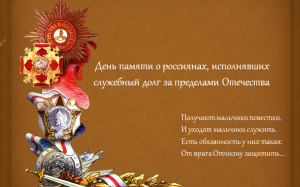 «15 февраля День памяти о россиянах, исполнявших служебный долг за пределами Отечества»15 февраля в России отмечается День памяти о россиянах, исполнявших служебный долг за пределами Отечества. Эта дата установлена в память о советских и российских военнослужащих, участвовавших в военных конфликтах за рубежом. Исторически день приурочен к 15 февраля 1989 года, когда последняя колонна советских войск покинула территорию Афганистана, завершив длившуюся почти десять лет Афганскую войну (1979–1989 гг.). В этот день вспоминают не только воинов-афганцев, но и всех, кто выполнял боевые задачи за пределами России в разных точках мира: в Корее, Вьетнаме, Анголе, Сирии, на территории стран СНГ в ходе миротворческих и контртеррористических операций и других конфликтах. Это день скорби и уважения к подвигу тех, кто отдал жизнь, исполняя воинский долг за рубежом, и к тем, кто вернулся, сохранив верность присяге. |