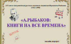 Анатолий Наумович Рыбаков: книги на все временаАнатолий Наумович Рыбаков (Аронов) выдающийся русский писатель XX столетия, лауреат государственных премий. В биографии писателя есть факт ареста. В студенческие годы за антиреволюционную пропаганду он был отправлен в трехлетнюю ссылку. По окончании ссылки он долго скитался по различным городам и брался за любую подвернувшуюся работу там. Однако вскоре эти мучения закончились и в 1938 году его приняли на работу главным инженером областного управления транспортом. На этой должности он пробыл до 1941 года, а затем служил в автомобильной части Красной Армии. А. Н. Рыбаков принимал участие в различных боях и показал себя с лучшей стороны. За это он был реабилитирован. В 1947 году писатель полностью посвятил себя литературной деятельности. Сначала он написал две приключенческие повести для детей: «Кортик» и «Бронзовая птица». Затем появились и другие произведения, адресованные детям. Среди них, «Приключения Кроша», «Каникулы Кроша» и т.д. Все эти работы Рыбакова были впоследствии экранизированы. Свой первый серьезный роман «Водители» (1950) он посвятил людям, которых хорошо знал. В последующие годы появился роман «Екатерина Воронина», а затем роман «Лето в Сосняках». Одним из лучших произведений Рыбакова считается роман о трудной жизни еврейской семьи «Тяжелый песок « (1978). Этот роман лег в основу кинофильма, снятого после смерти писателя. Нашумевший роман «Дети Арбата» был написан в 1960-х, но допущен к публикации лишь в 1987 году. В романе рассказывалось о судьбах молодежи 30-х годов. По мотивам этой книги в 2004 году был снят многосерийный фильм. Писатель скончался в декабре 1998 года в Нью-Йорке. |