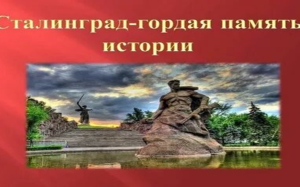 «Сталинград гордая память истории»2 февраля в России отмечается День воинской славы День разгрома советскими войсками немецко-фашистских войск в Сталинградской битве (1943 год). Сталинградская битва, длившаяся с 17 июля 1942 года по 2 февраля 1943 года, является одним из величайших и самых кровопролитных сражений в истории человечества. Она стала коренным переломом в ходе Великой Отечественной и всей Второй мировой войны. Победа Красной Армии на Волге ознаменовала переход стратегической инициативы к СССР и положила начало массовому изгнанию захватчиков с советской земли. Подвиг защитников Сталинграда солдат и офицеров, рабочих, ополченцев стал символом невиданного мужества, стойкости и массового героизма. Город был практически полностью разрушен, но не сдался. Окружение и последующий разгром 330-тысячной группировки вермахта под командованием фельдмаршала Паулюса продемонстрировали возросшее мастерство советского командования и моральное превосходство наших воинов. «Сталинград гордая память истории» это точные слова. Память о Сталинградской победе это память о величии духа нашего народа, заплатившего огромную цену за свободу. Она навсегда остаётся фундаментальной частью национальной идентичности России, уроком доблести и самопожертвования для всех последующих поколений. Сегодня Мамаев курган и мемориальный комплекс «Героям Сталинградской битвы» в Волгограде являются местом всенародного поклонения и символом несгибаемой воли. |