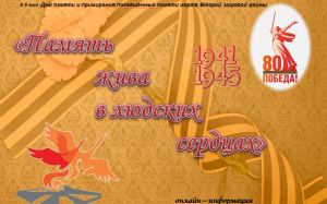 С его безоблачной погодой Нам выдал общую беду На всех, на все четыре года Константин Симонов 22 июня 1941 года самая печальная памятная дата в истории нашего Отечества. В 4 утра без объявления войны фашистская Германия и ее союзники напали на Советский Союз. Части Красной армии были атакованы немецкими войсками на всем протяжении границы. Бомбардировкам подверглись Рига, Виндава, Либава, Шауляй, Каунас, Вильнюс, Гродно, Лида, Волковыск, Брест, Кобрин, Слоним, Барановичи, Бобруйск, Житомир, Киев, Севастополь и многие другие города, железнодорожные узлы, аэродромы, военно-морские базы СССР, сильному артиллерийскому обстрелу подверглись пограничные укрепления и районы дислокации советских войск вблизи границы от Балтийского моря до Карпат. Началась Великая Отечественная война. Тогда еще никто не знал, что в историю человечества она войдет как самая кровопролитная. Никто не догадывался, что советскому народу предстоит пройти через нечеловеческие испытания, пройти и победить. Избавить мир от фашизма, показав всем, что дух солдата Красной Армии не дано сломить захватчикам. Никто и предположить не мог, что названия городов-героев станут известны всему миру, что Сталинград станет символом стойкости наших людей, Ленинград символом мужества, Брест символом отваги, что, наравне с мужчинами-воинами, землю от фашисткой чумы геройски станут защищать старики, женщины и дети. На протяжении следующих 1417 дней советские люди сражались за свои жизни и свободу. Десятки миллионов воинов Красной Армии и гражданских жителей Советского Союза потеряли свои дома и близких людей, и война оставила после себя глубокие раны, которые до сих пор еще не зажили. Но даже тогда, в те такие безумные и тяжелые временах было место для духа и решимости, и вере в свою страну. 22 июня 2025 исполнится 84 года со дня начала Великой Отечественной Войны 1941-1945 г.г. Эту дату мы ежегодно отмечаем, как День памяти, День гордости и скорби о тех, через чьи жизни прошла жестокая война, о тех, кто не вернулся с кровавых полей сражений за свободу и независимость Родины. Наш долг хранить память о невероятном подвиге наших соотечественников, уважение к их стойкости, мужеству, беззаветной любви к Отечеству и передать это следующим поколениям. |