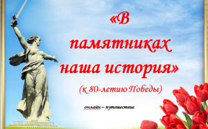 18 апреля Международный день памятников и памятных местКаждый год, 18 апреля, отмечается Международный день памятников и памятных мест. Человек имеет память и неотъемлемую ее функцию забывание. Чтобы выжить, человеку нужно было помнить о самом главном. Так появились памятники. В конце концов возникли специальные композиции, посвящения. Памятники устанавливаются в общественных местах. Они отличаются крупными размерами, долговечностью материала. Памятники увековечивают людей или события, которые приобрели всеобщую известность. И наш народ не остаётся равнодушным к произведениям монументальной скульптуры: возле памятника всегда можно видеть людей, останавливающихся, чтобы внимательно рассмотреть скульптуру. На гранитных пьедесталах памятников очень часто лежат букеты цветов трогательный знак уважения и любви нашего народа. Ежегодно 9 Мая, 22 июня торжественно проводятся митинги и возлагаются траурные венки, букеты к мемориалам Солдатской Славы. Наша презентация приурочена к 80-летию Победы. День памятников и исторических мест признан по всему миру, но особенно важным этот праздник должен быть для нас. Он должен касаться каждого, глубоко внедриться в наше национальное сознание. Мы обязаны помнить: культурные и исторические ценности это то, что нас объединяет, воспитывает и делает сильнее. Это то, что делает нас людьми… |