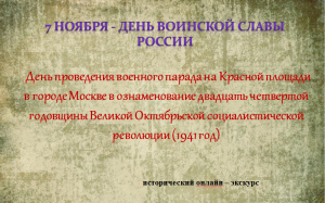 ПАРАД, ИЗМЕНИВШИЙ ИСТОРИЮ7 ноября отмечается День воинской славы России: в этот день в 1941 году на Красной площади в Москве состоялся военный парад в честь годовщины Октябрьской революции. Этот парад был особенным, значимым и поворотным событием в истории страны. Осенью 1941 года у стен столицы решалась судьба страны. В это время советские войска вели тяжёлые оборонительные бои с фашистскими войсками. В некоторых местах линия фронта проходила в 30 километрах от центра города, и проведение военного парада по силе воздействия на ход событий приравнивался к важнейшей военной операции. Он имел огромное значение для поднятия морального духа всей страны, показав миру, что Москва не сдаётся и боевой дух армии не сломлен. Это был первый военный парад. Войска уходили с парада прямиком на фронт, на защиту Москвы. Грандиозная Московская битва станет тем событием, после которого не только поднимется боевой дух Красной армии, но и будет проведено первое крупное наступление. По силе воздействия на ход событий в Великой Отечественной войне парад приравнивают к важнейшим военным операциям. И факт его проведения красноречивее всего говорит о том, что русский народ не сломить. |