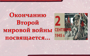 Вторая мировая война (1945 год)3 сентября отмечается День воинской славы России День окончания Второй мировой войны (1945 год). До 2020 года эта дата отмечалась 2 сентября, но в апреле 2020 года в данный закон были внесены изменения, согласно которым празднование было перенесено на 3 сентября. Самая крупная в истории человечества война двух мировых военно-политических коалиций продолжалась шесть лет с 1 сентября 1939 года и до 2 сентября 1945 года. Она охватила территории 40 государств трех континентов: Европы, Азии, Африки, а также все четыре океанских театра (Атлантический, Тихий, Индийский и Северный Ледовитый). Желая обезопасить свои границы на Дальнем Востоке и идя навстречу союзникам, СССР на Ялтинской и Потсдамской конференциях руководителей трех союзных держав принял на себя обязательство вступить в войну с Японией спустя два-три месяца после окончания войны с Германией. 8 августа 1945 года, в соответствии с данными обязательствами, Советский Союз объявил войну Японии и 9 августа начал военные действия. Вторая мировая война была завершена. Она принесла неисчислимые разрушения и огромные потери всем участвовавшим в ней государствам. Победа СССР и стран антигитлеровской коалиции над нацистской Германией и милитаристской Японией в данной войне имела всемирно-историческое значение, оказала огромное влияние на все послевоенное развитие человечества, коренным образом изменила расстановку политических сил в мире. |