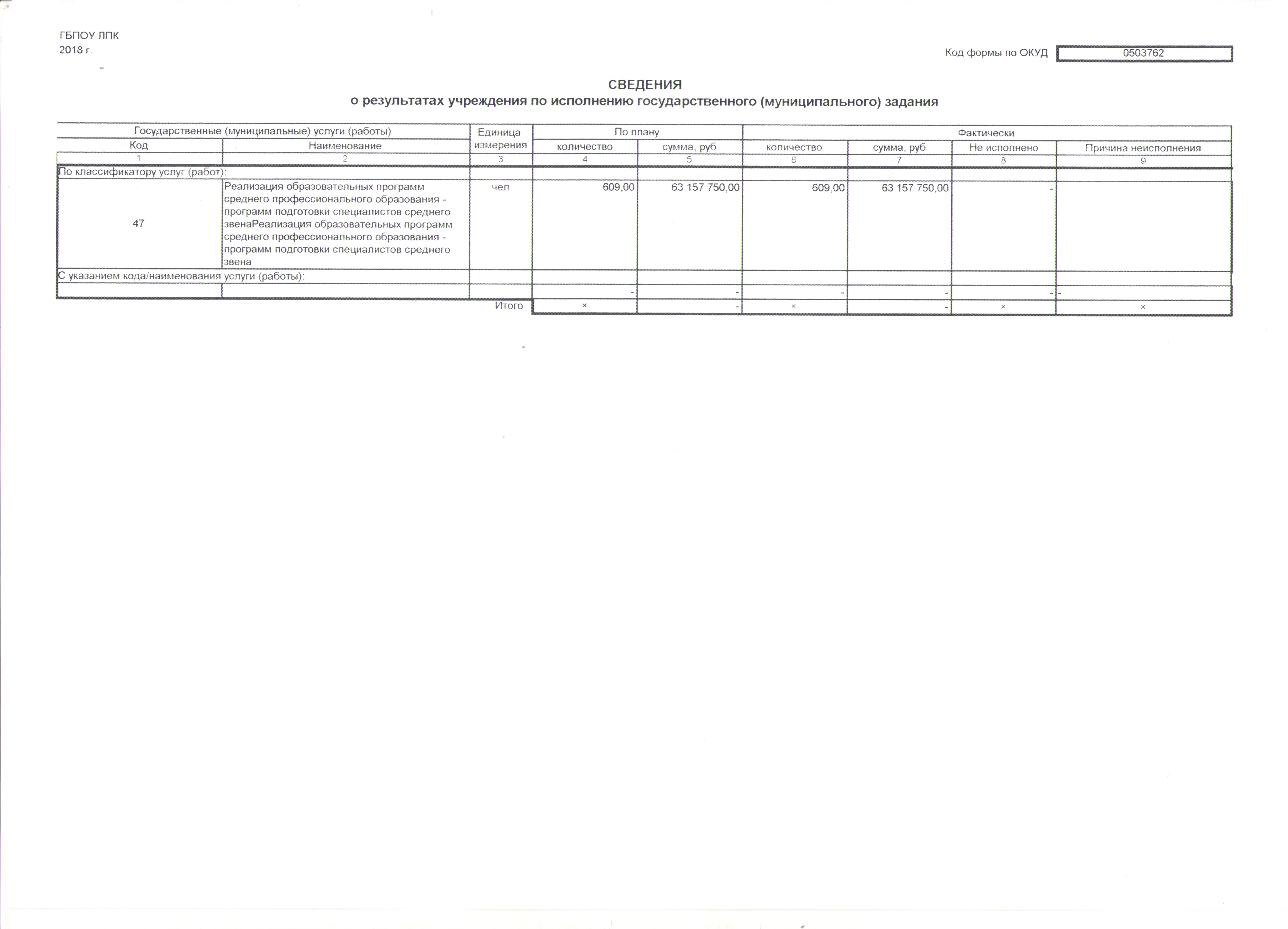 Отчет о выполнении государственного задания № 50 на 2018 год и на плановый период 2019 и 2020 годов;