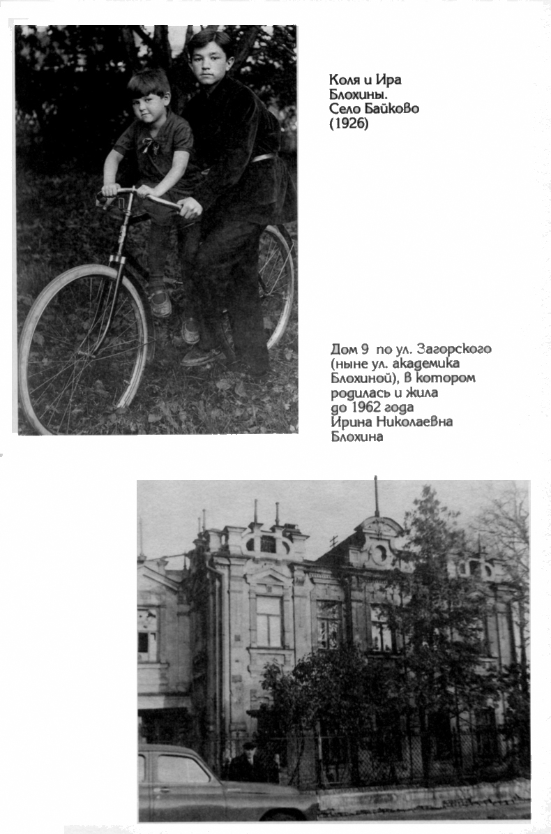 Одновременно (с 1924 по 1927 гг.) служил в должности "врача для поручений" при медсанчасти 59-ой стрелковой дивизии. В последующие годы Николай Иванович, видимо, также вынужден был подрабатывать. Семья была большая. В 1927 г. приехали родители Евдокии Ивановны, в начале 30-х годов - отец Николая Ивановича. В 1936 г. старшие дочери вышли замуж, сын Николай женился. И все они единой семьей жили на первом этаже старого особняка. Кроме постоянной прислуги это составляло от 10 до 12 человек. Кроме того, практически членом семьи была Ольга Федоровна Крылова - учительница начальных классов, выпускница Мариинского дворянского института. Она в начале 20-х годов жила на улице Дворянской (ныне Октябрьская) и приватно начала заниматься с девочками Таней и Ирой Блохиными главным образом иностранными языками. Бло-хины в порядке "добровольного уплотнения" поселили ее в своей квартире. Она жила в семье Блохиных до конца 50-х гг. и, несомненно, положительно влияла на воспитание и начальное обучение детей Николая Ивановича и Евдокии Ивановны.