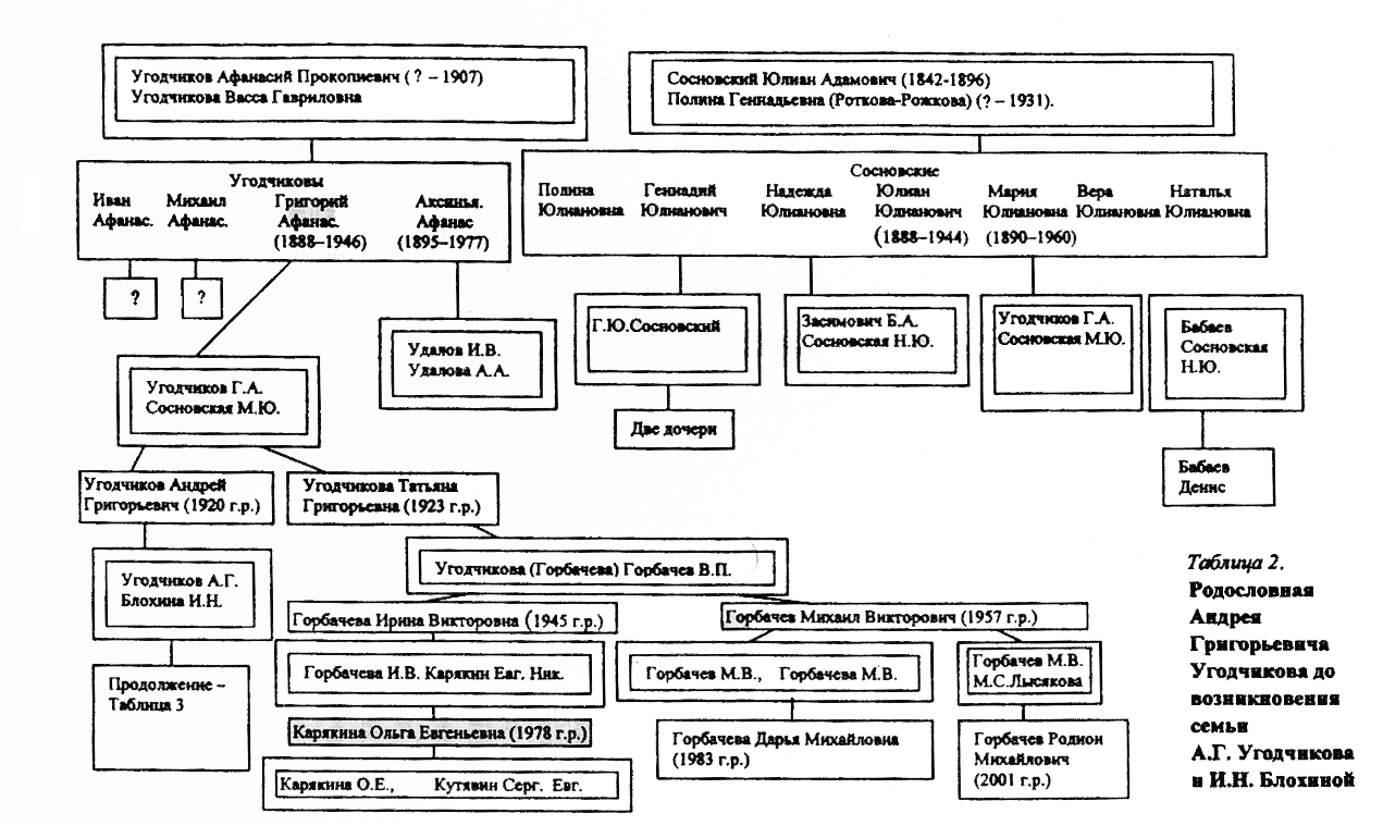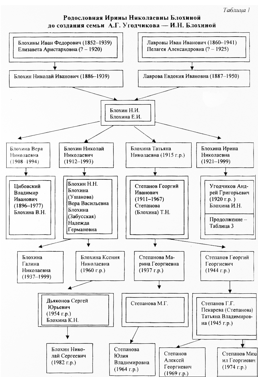Волею судеб у меня сохранился целый пласт материалов (краткие воспоминания, фотографии, журнальные и газетные статьи), характеризующих почти всех прямых родственников семьи Угодчиковых и семьи моей жены, Ирины Николаевны Блохиной. История этих семей берет начало в первой половине XIX века это как бы "движущаяся панорама десятилетий", из которых слагаются столетия, семейные традиции, понимание нравственного долга по отношению к людям, труду, Родине. Анализ этих материалов дал мне возможность понять, как наша семья, мои дети и внуки остались верны лучшим традициям предков, насколько результативными оказались их "уроки" в наших творческих планах, в выполнении родительского долга...