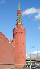 Беклемишевская башняБеклемишевская (Москворецкая) башня Кремля, юго-восточная угловая на берегу реки Москвы. Построена в 1487-1488 итальянским архитектором Марко Руффо (Марк Фрязин). Название от примыкавшего со стороны Кремля двора боярина Беклемишева. Защищала брод и переправу через реку Москву. Круглая в плане, имела четыре боевых яруса с круговым обстрелом. На верхней площадке бойницы навесного боя (машикули). В подвале тайник-слух для предупреждения подкопа. В конце XVII века увенчана шатром. В 1707 в связи с угрозой нападения шведов бойницы растёсаны для установки тяжёлых пушек (восстановлены в 1949). В дни Октябрьских боёв 1917 верх шатра повреждён снарядом и восстановлен архитектором И.В. Рыльским. Современная высота 46,2 метра. «Москва» . Энциклопедия. М.: СЭ, 1980 |