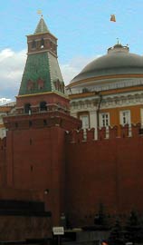 Сенатская башняБашню построили в 1491 году на Красной площади, между Фроловской и Никольской башнями. Архитектор Пьетро Антонио Солари. Долгое время башня была безымянной, и только после завершения строительства в Кремле здания для Сената (1790 г., архитектор М.Ф. Казаков) ее стали называть Сенатской. Внутри основного объема башни имеются три яруса сводчатых помещений. Глухая, квадратная в плане башня в 1680 году была надстроена каменным шатром, его венчает золоченый флюгер. Высота башни 34,3 метра.