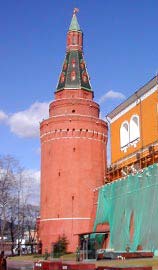 Арсенальная УгловаяАрсенальная угловая башня Кремля, северо-восточная угловая. Построена в 1492 году итальянским архитектором Пьетро Антонио Солари. До начала 18 века называлась Собакина башня (по примыкавшему со стороны Кремля двору боярина Собакина). Современное название после постройки Арсенала. В плане 18 граней, толщина стен около 4 метров, имела 4 боевых яруса, на верхней площадке бойницы навесного боя (машикули). В подвале сохранился тайник-колодец. В 1686 году увенчана шатром. В 1707 году в связи с угрозой нападения шведов бойницы растёсаны для установки тяжёлых пушек. В 1812 году при отступлении французов пострадала от взрыва, восстановлена в 1816-1819 годах архитектором О.И. Бове. Реставрирована в 1946-1950 годах и 1975-1976 годах. Современная высота 60,2 метра. «Москва» . Энциклопедия. М.: СЭ, 1980