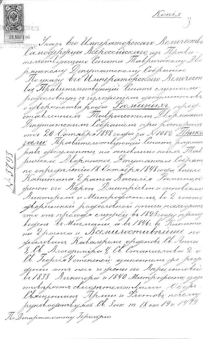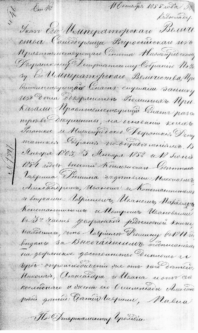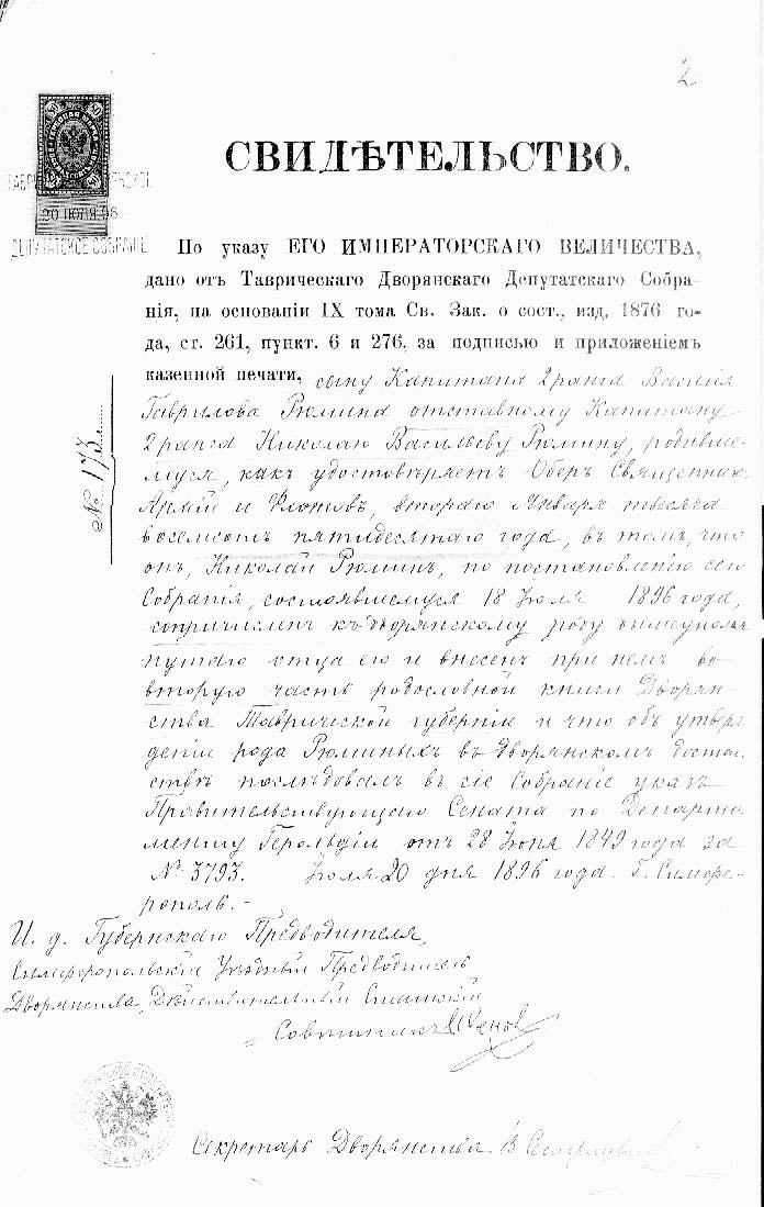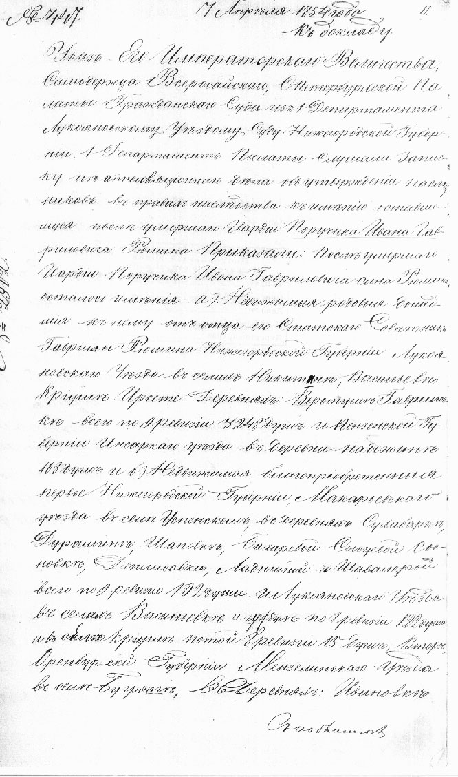 Дела Нижегородскаго дворянскаго депутатского собрания по прошению Ратмистра Гаврила Ивановича Рюмина , о внесение его в дворянскую родословную книгу