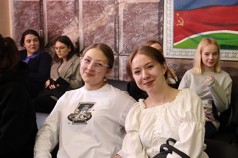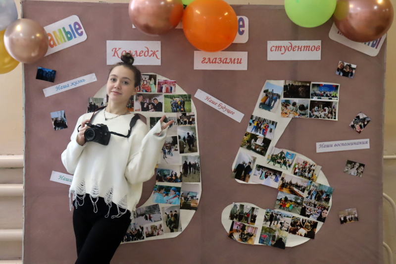 В этот день в большом актовом зале педколледжа не было свободных мест. До этого в фойе все желающие могли стать участниками флэшмоба сделать снимок в фотозоне с реквизитом в юбилейной тематике, и многие воспользовались этой возможностью.
